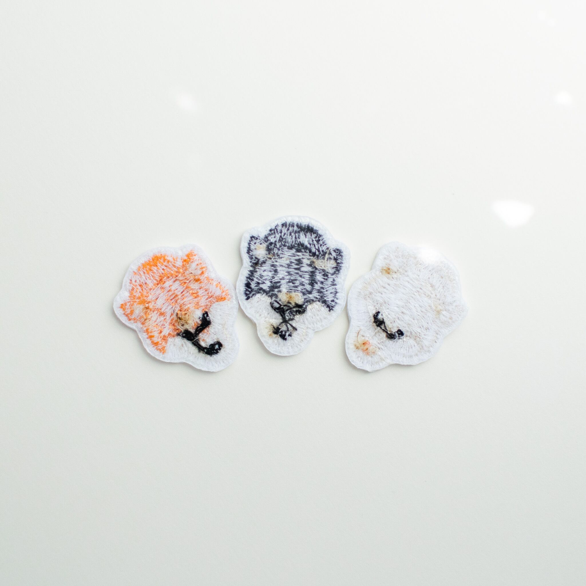 刺繍で柴犬の毛並みを表現しています。