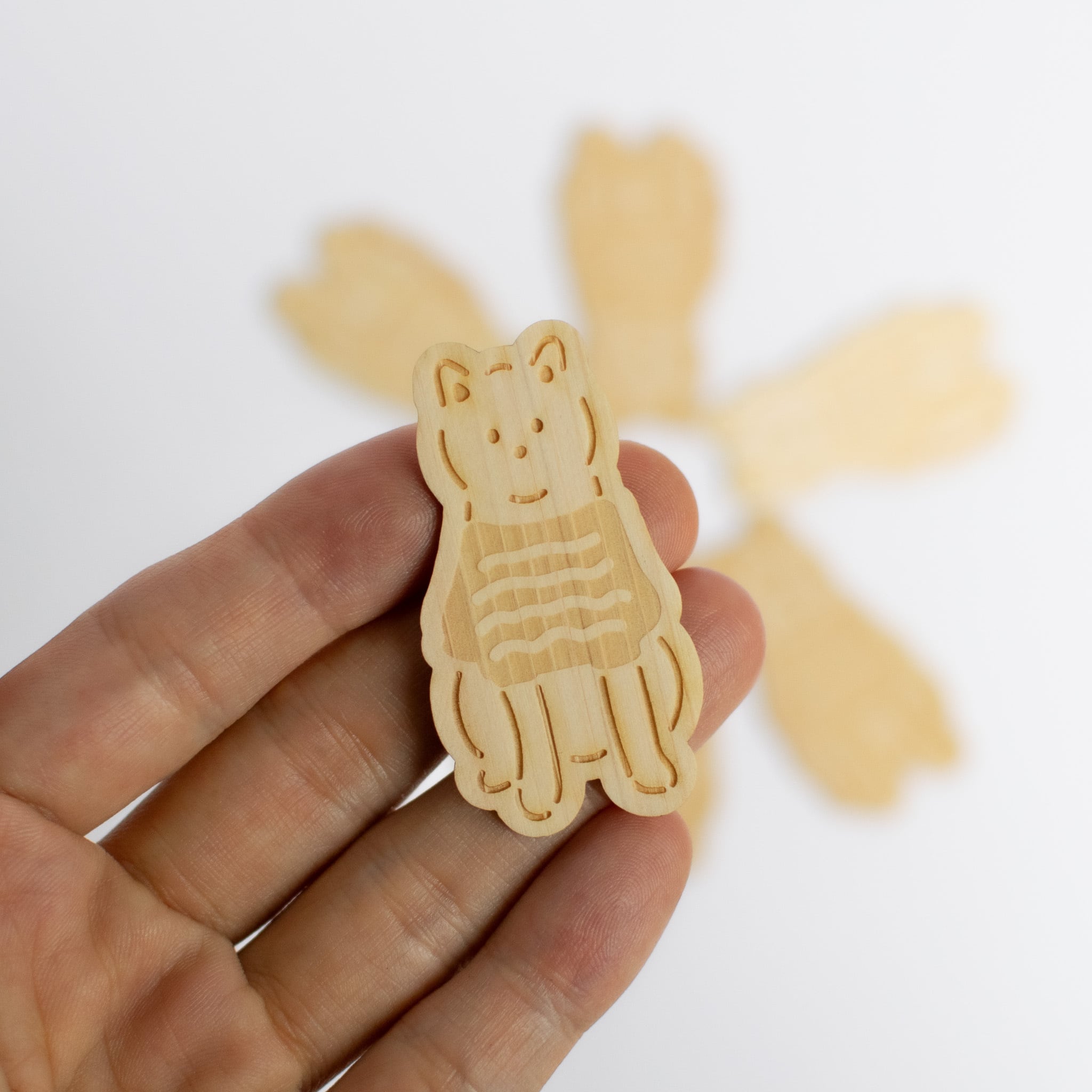 ヒノキの木で木製のステッカーを作りました。