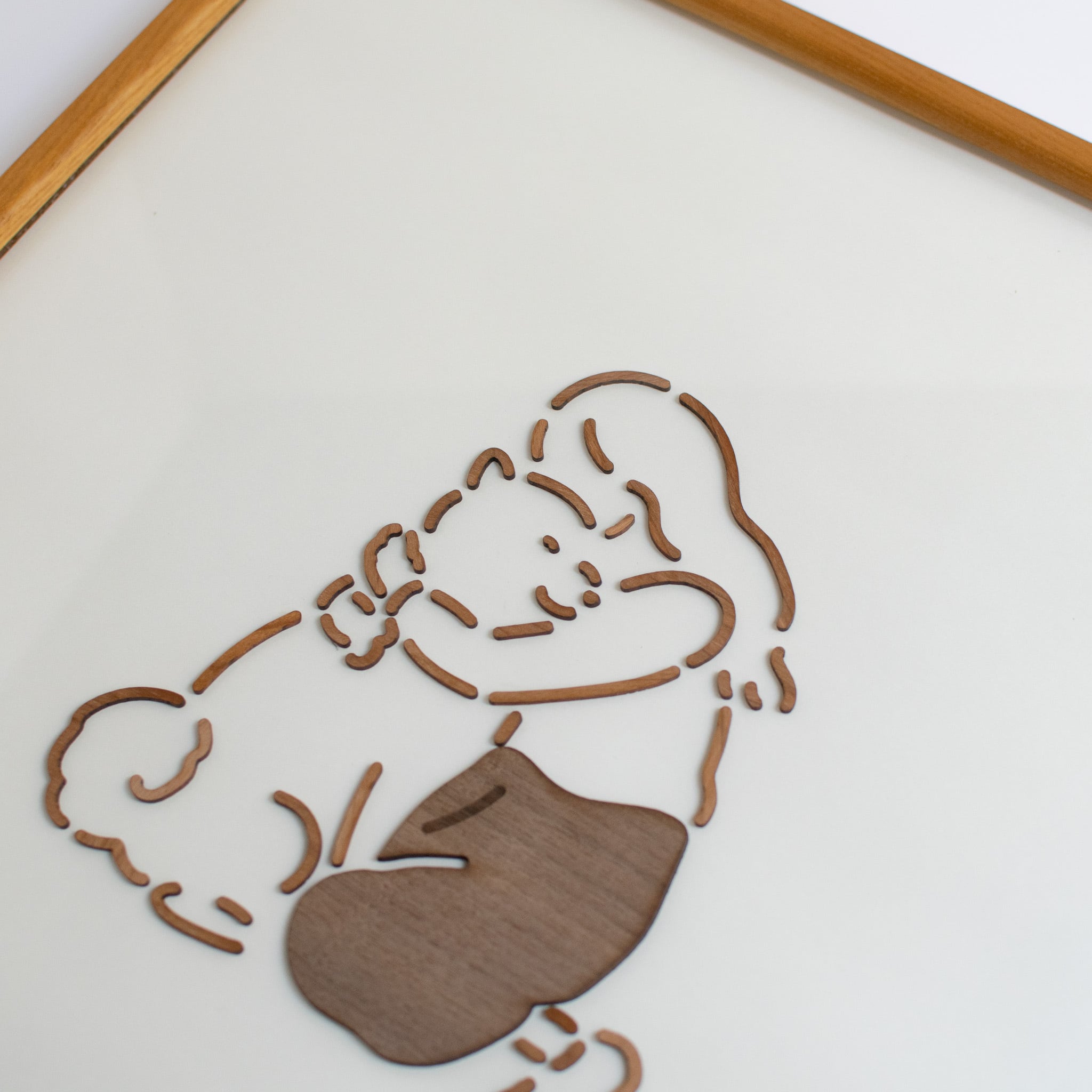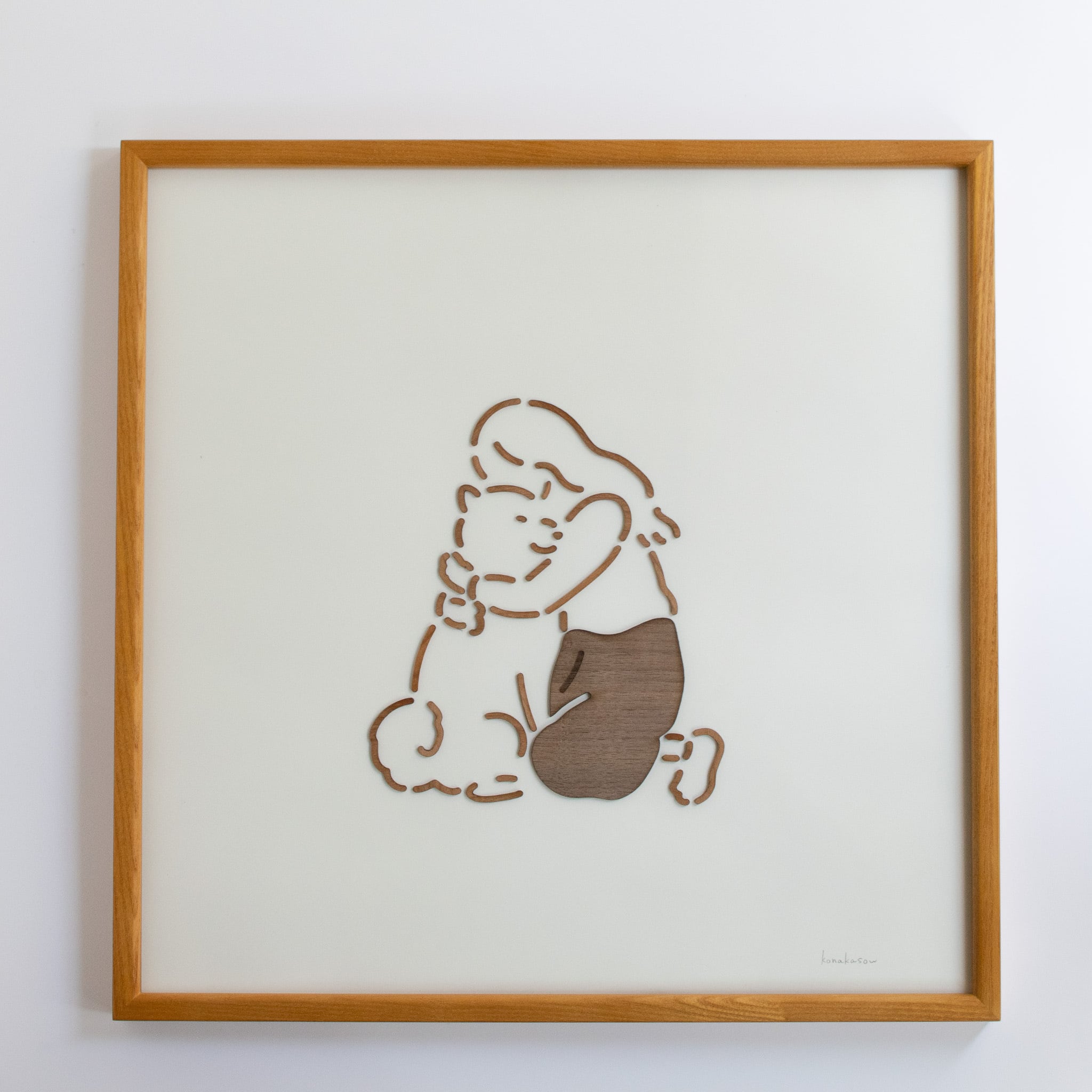 大阪での個展『出会ってくれてありがとう』用に製作した、木の絵画。(木の絵画とは、イラストを木の素材でそのまま表現した作品です)