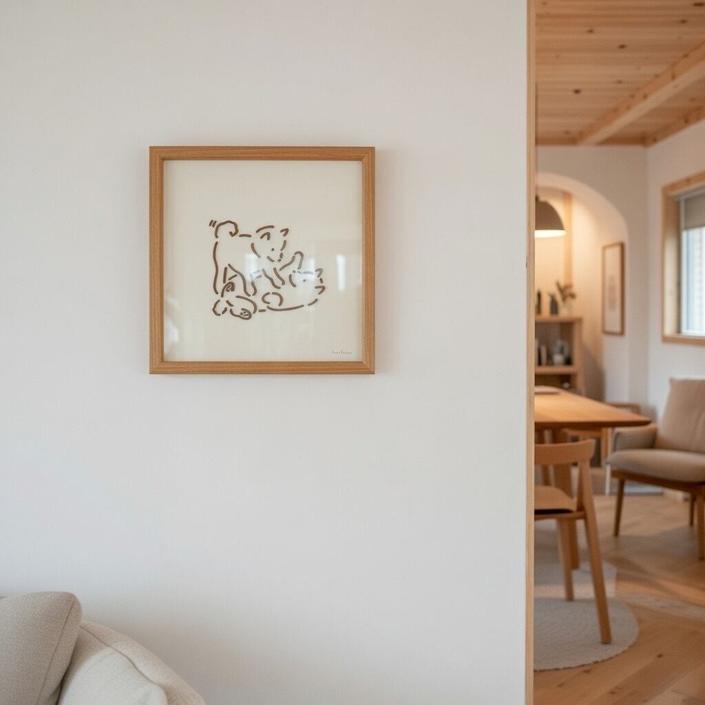 犬と暮らす日々のぬくもりや、ふとした仕草の愛らしさを絵にしています。愛犬との思い出を、