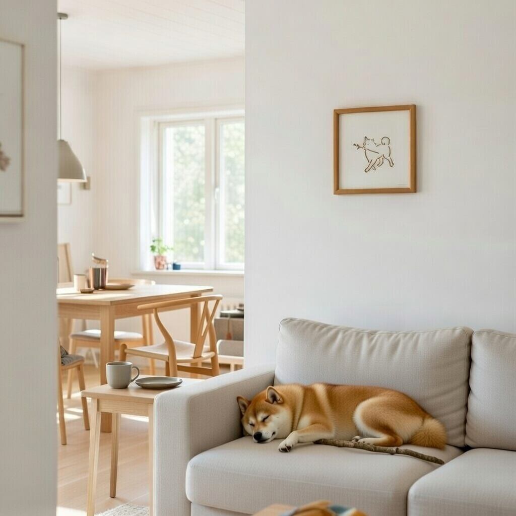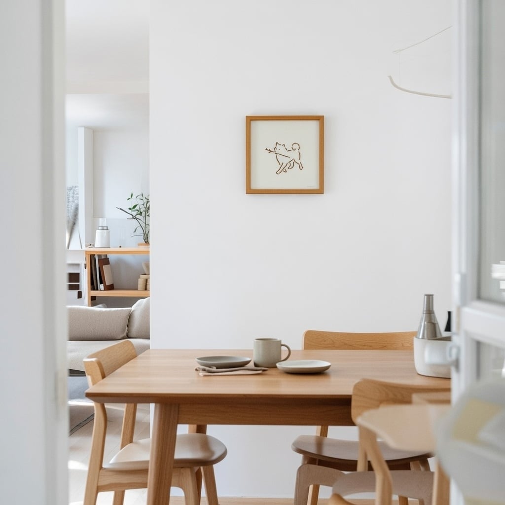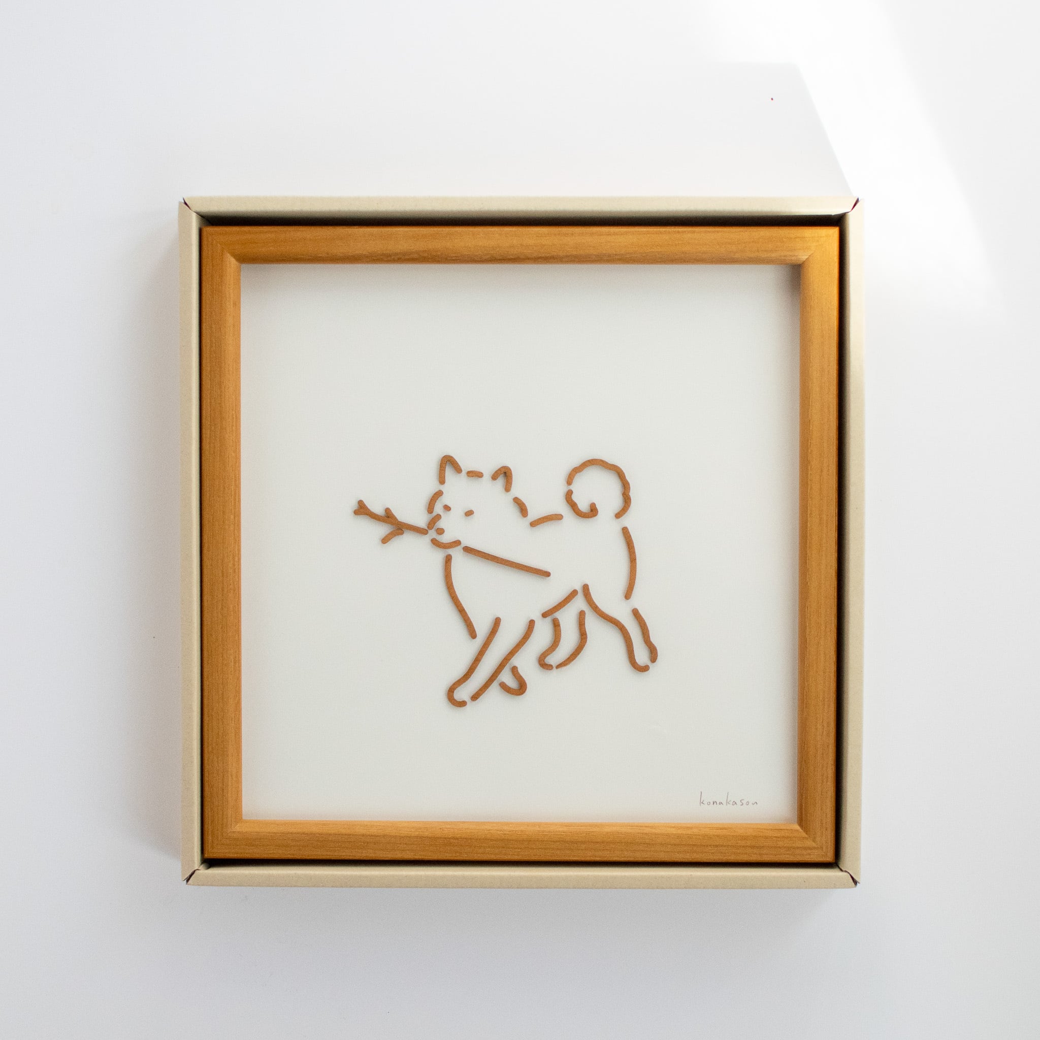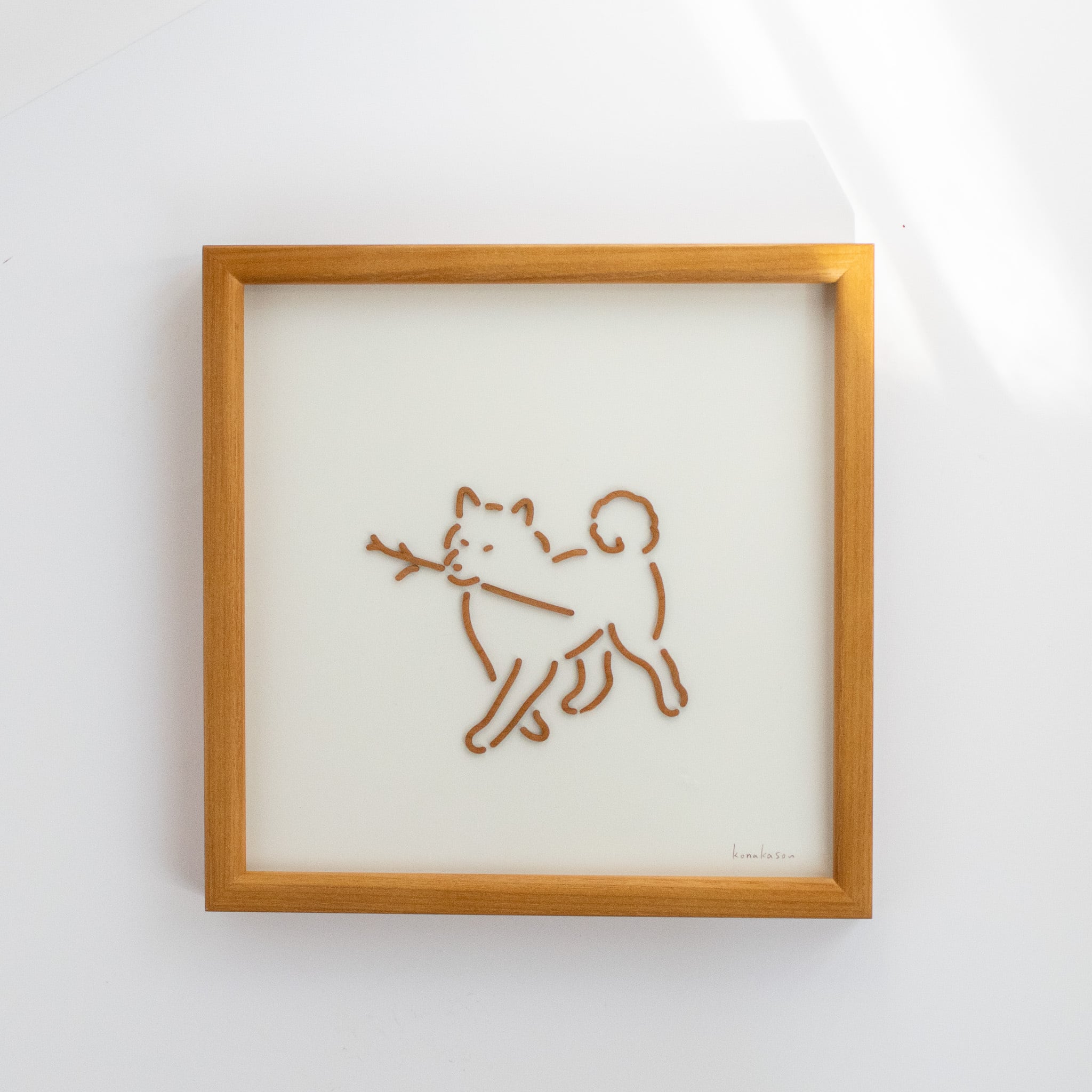 線画のイラストを、木で表現したインテリアです。イラストを印刷するのではなく、約2mmの木材をカットし、線そのものを浮かび上がらせています。