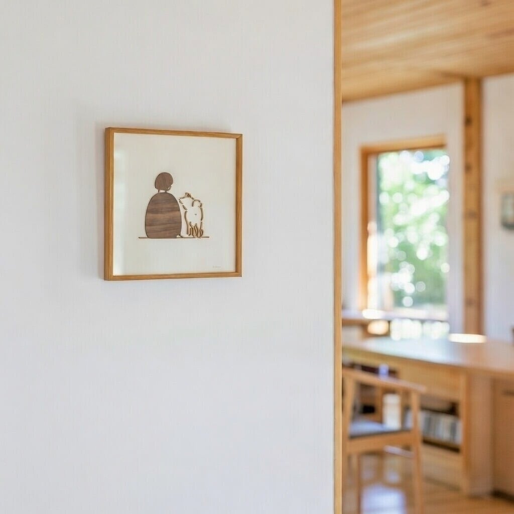 ふたりの間に流れる信頼の空気感を、木製のフレームにおさめました。