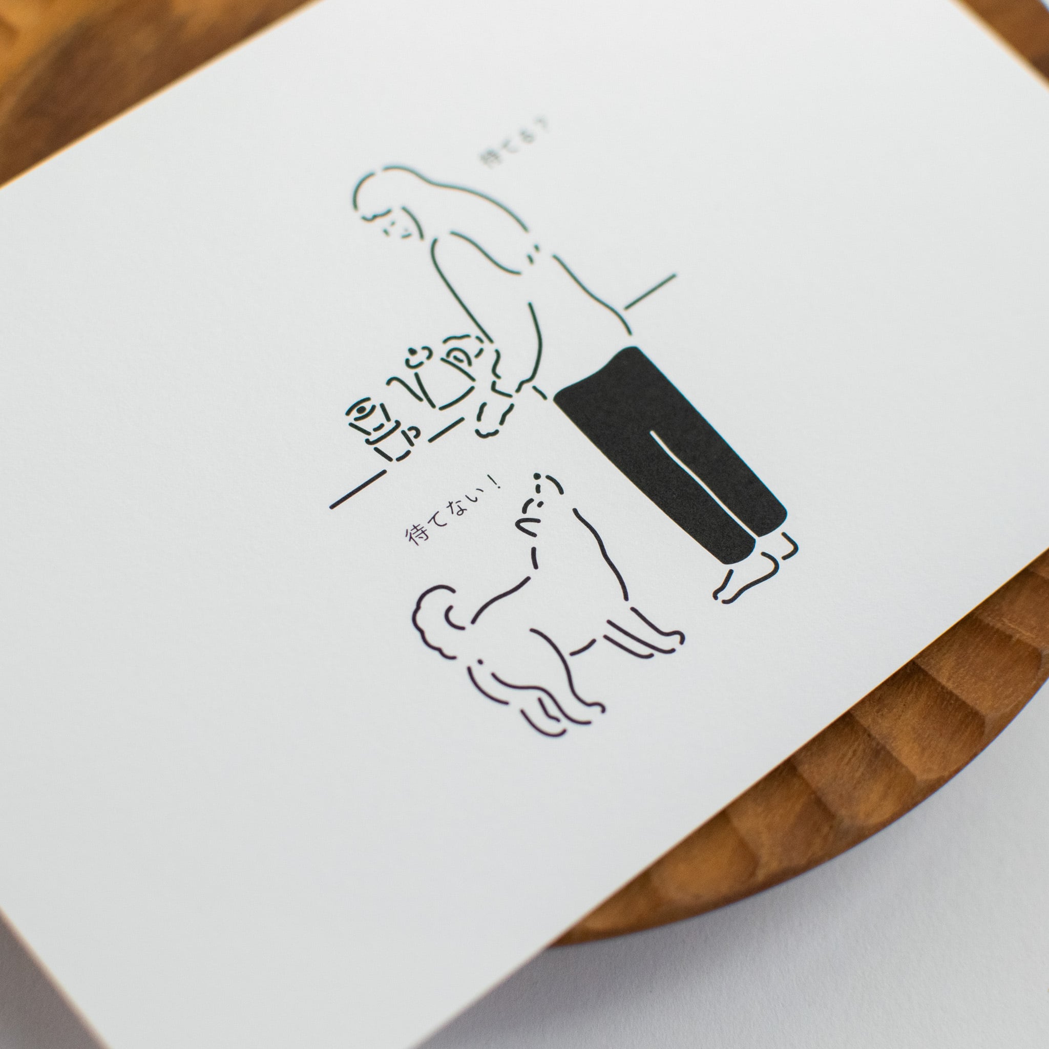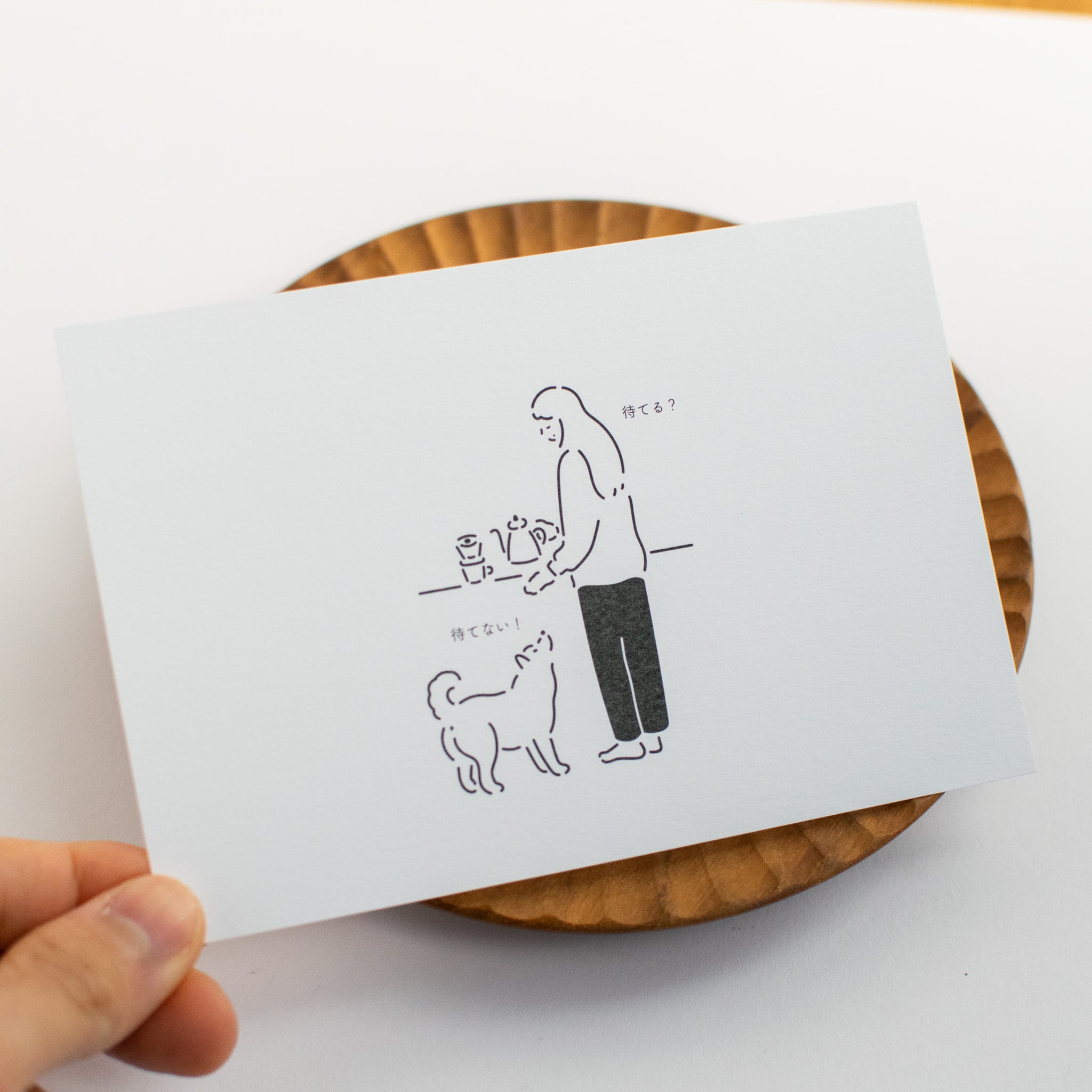 飼い主さんと愛犬の日常を描いたポストカード。