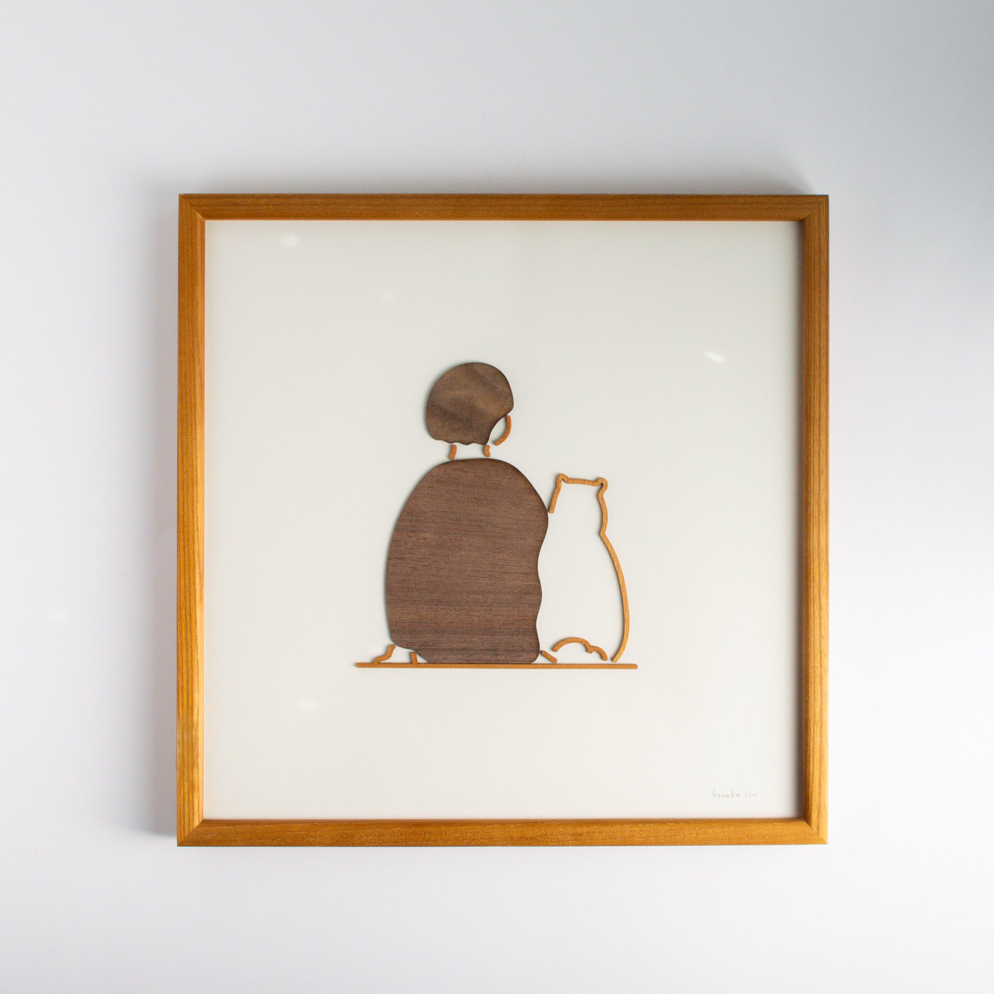 「 寄り添う2人」/木のラインパネル 30角