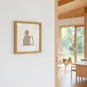 線画のイラストを、木で表現したインテリアです。約2mmの木材をカットし、線そのものを浮かび上がらせています。