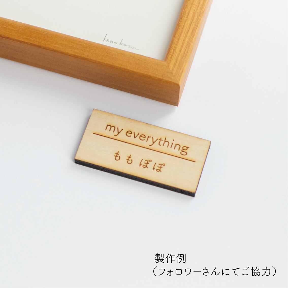 絵の下に付ける“キャプションプレート”に、お好きな言葉を彫刻できるサービスを始めました◎
